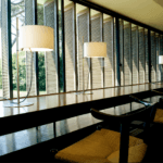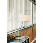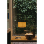 Med en struktur som stöds av en cirkulär metallbas ser linneskärmen på TMD-lampan ut som ett segel hissat på en mast. Oavsett om den är på eller av, lyckas TMD lägga till värme till utrymmet runt den. Ytterligare ett exempel på Miguel Milás tidlösa nykterhet.