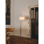 Med en struktur som stöds av en cirkulär metallbas ser linneskärmen på TMD-lampan ut som ett segel hissat på en mast. Oavsett om den är på eller av, lyckas TMD lägga till värme till utrymmet runt den. Ytterligare ett exempel på Miguel Milás tidlösa nykterhet.