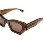 OGJORT är en kraftig cat eye-båge tillverkad av biologiskt nedbrytbar acetat och återvunnet svenskt stål. Solglasögonen har linser i bio-nylon som ger 100 % skydd mot UVA-, UVB- och UVC-strålar.