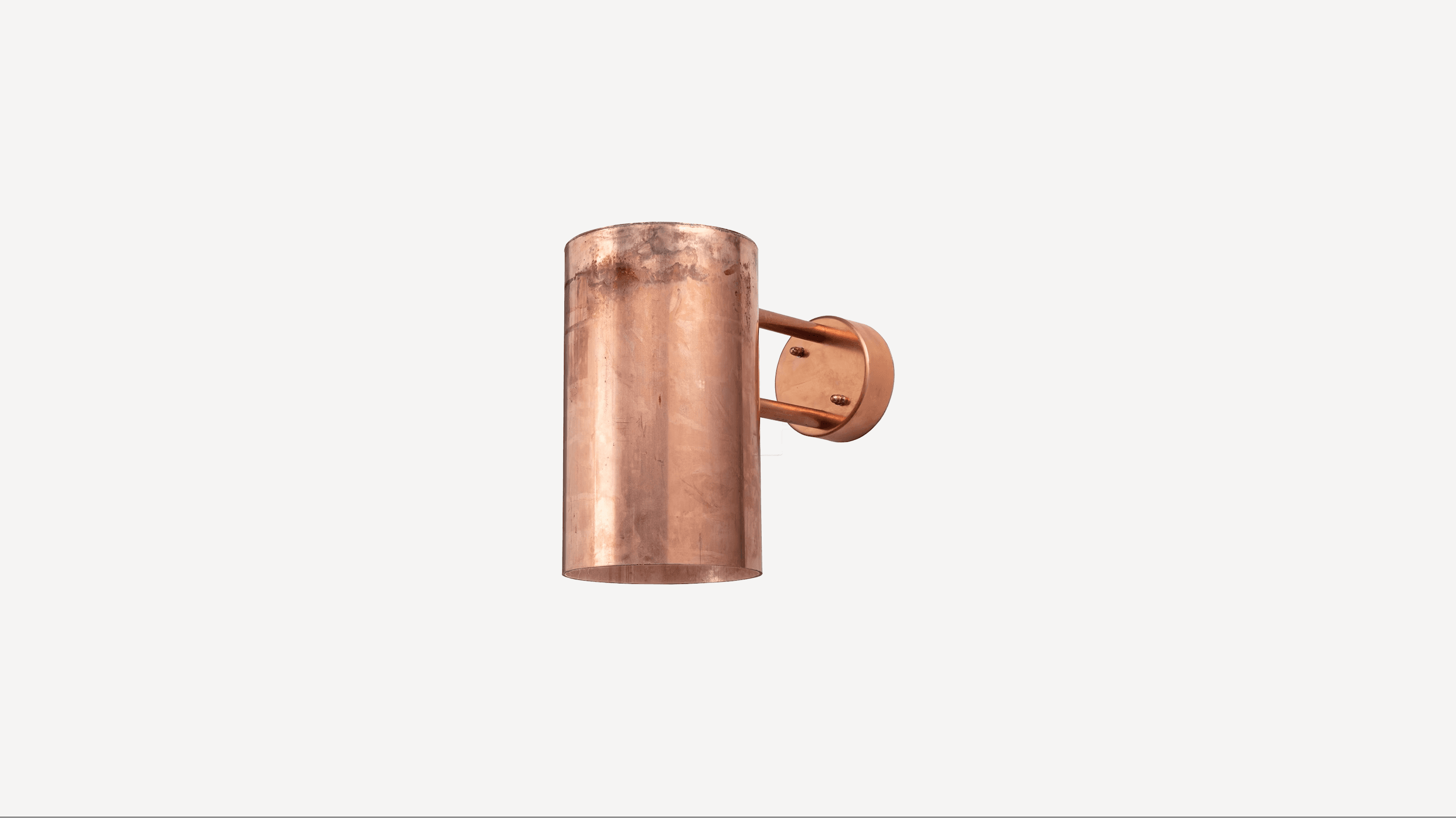 Hans-Agne Jakobsson designade ursprungligen dessa vägglampor för utomhusbruk, men de fungerar också utmärkt som uttrycksfulla lampor inomhus. Materialet, antingen koppar eller mässing, utvecklar en vacker patina med tiden. De finns tillgängliga i en stor (C627) och en mindre (C 627-110) version.