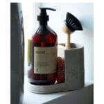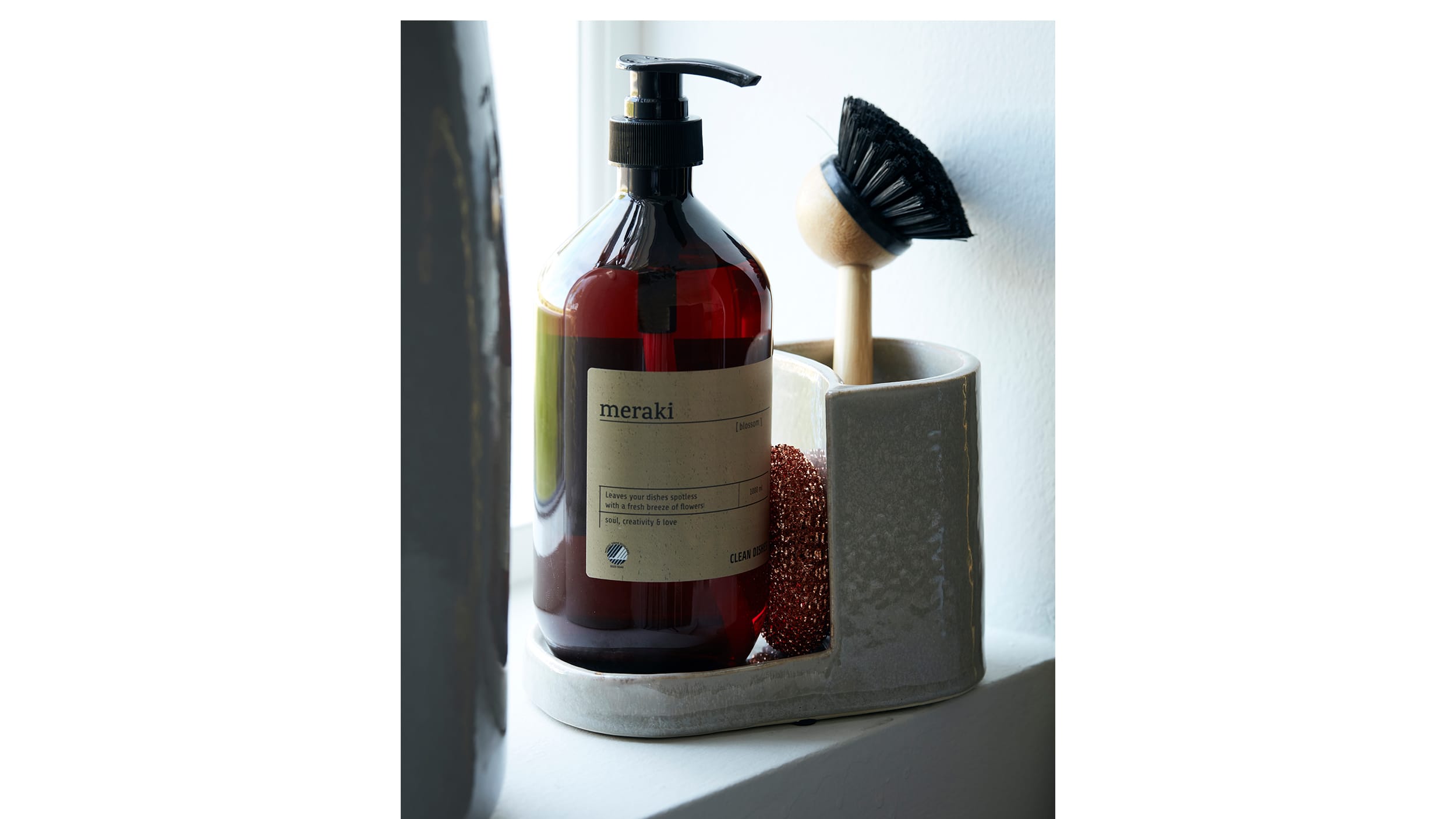 Samla diskmedel och diskborste i denna tidlösa och minimalistiska hållare som heter Datura. Istället för att lämna dina föremål liggande på köksbänken, förvara dem samlade på ett ställe. Detta gör det enklare för dig att rengöra bordsskivan och det ser helt enkelt snyggt ut med ett organiserat kök. Tillverkad av lergods med en gråaktig glasyr, bidrar denna borste- och tvålhållare till den lugna och naturliga känslan i ditt kök.