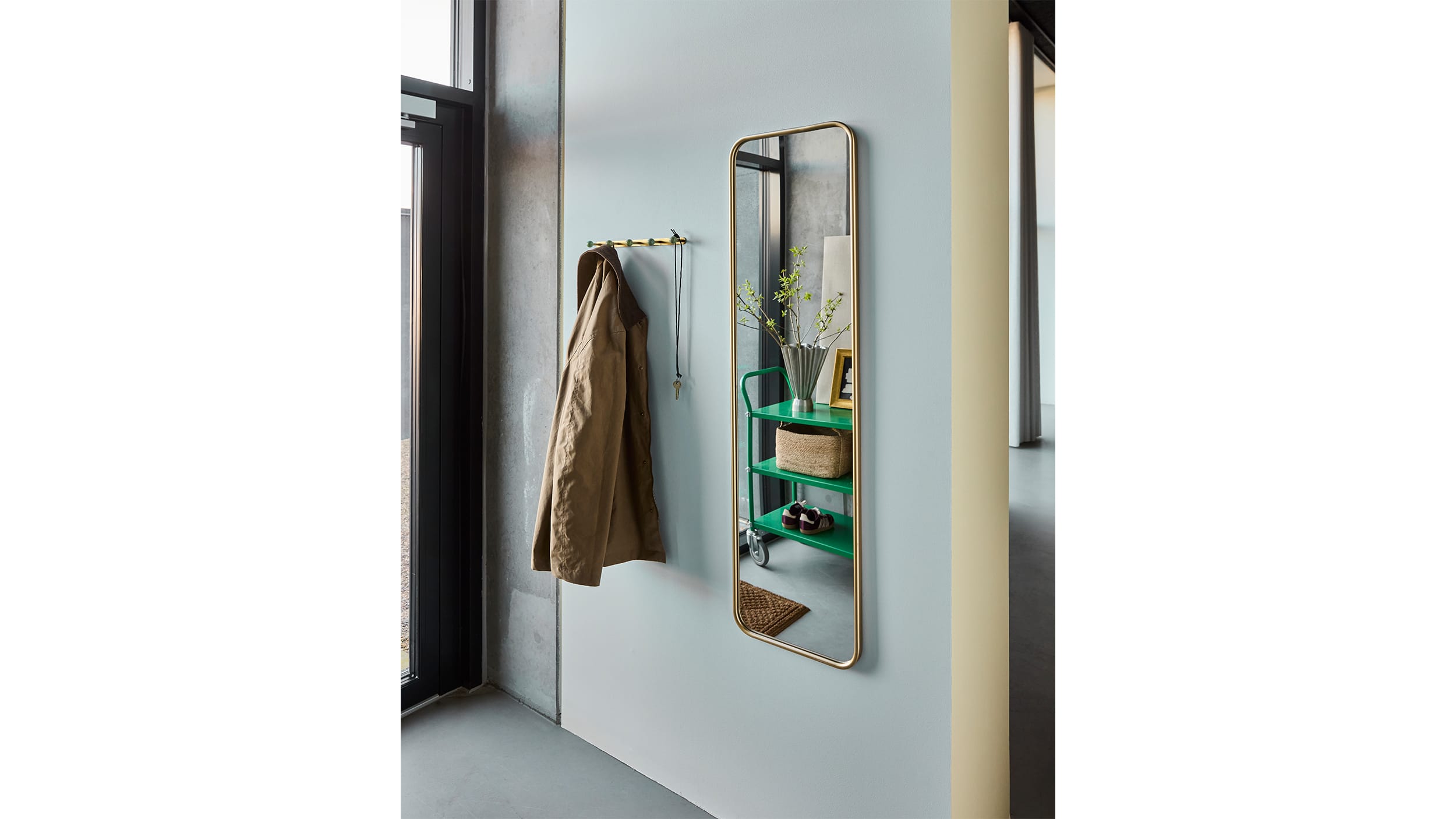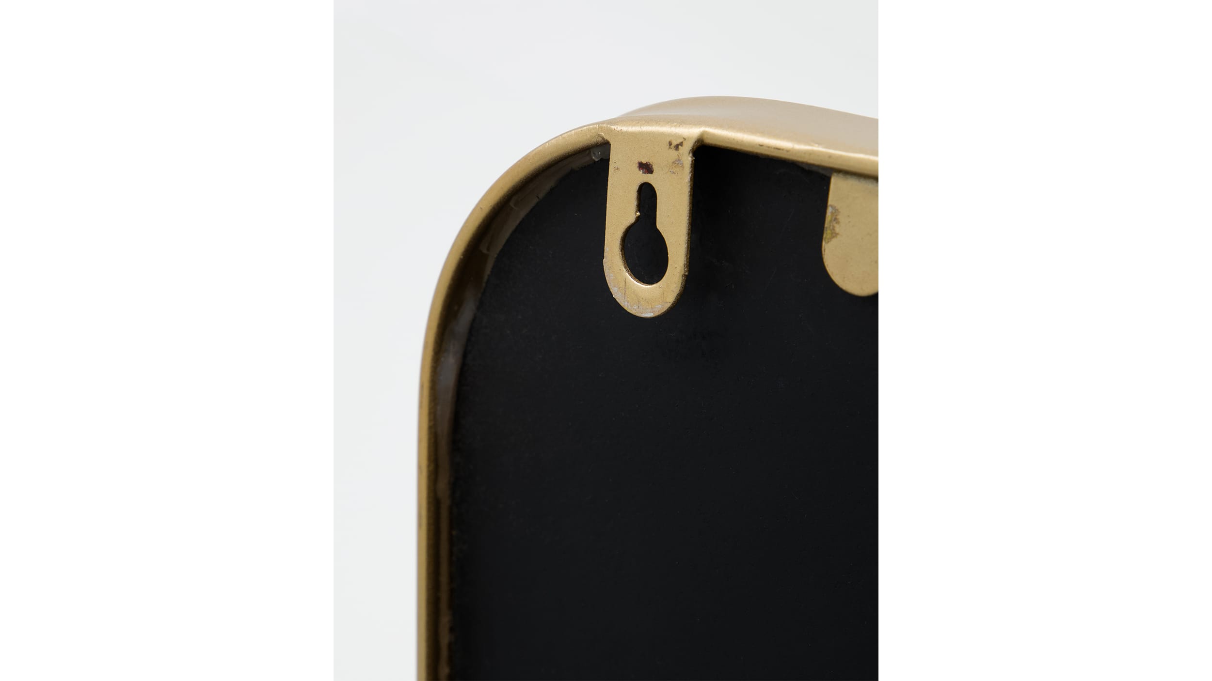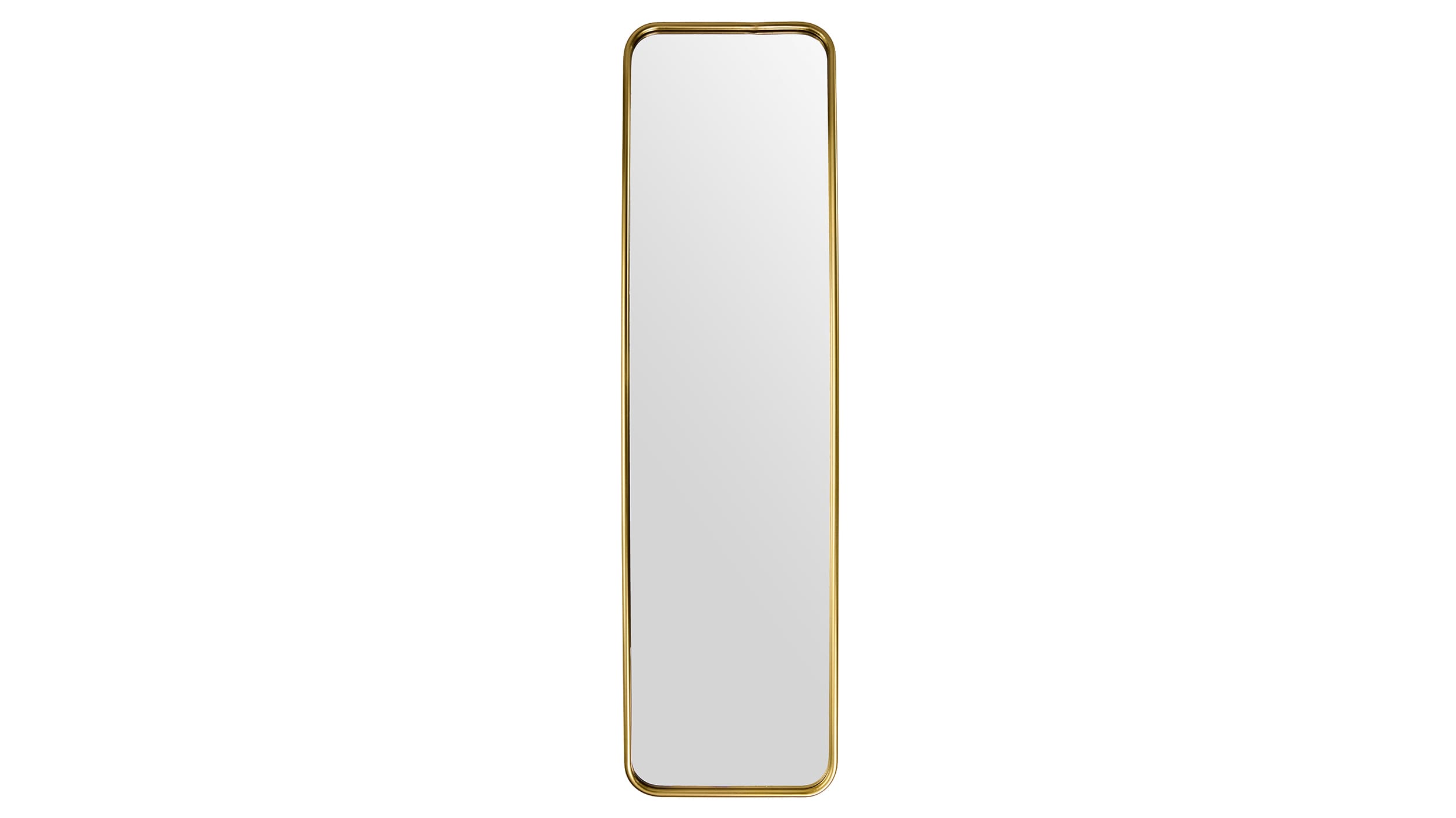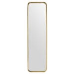 Förhöj ditt utrymme med denna eleganta spegel med guldfärgad inramning som blandar elegans med minimalistisk design. Den smala profilen och de rundade hörnen skapar en raffinerad silhuett, medan den glänsande guldfärgade finishen ger en touch av värme och sofistikering till vilket rum som helst.