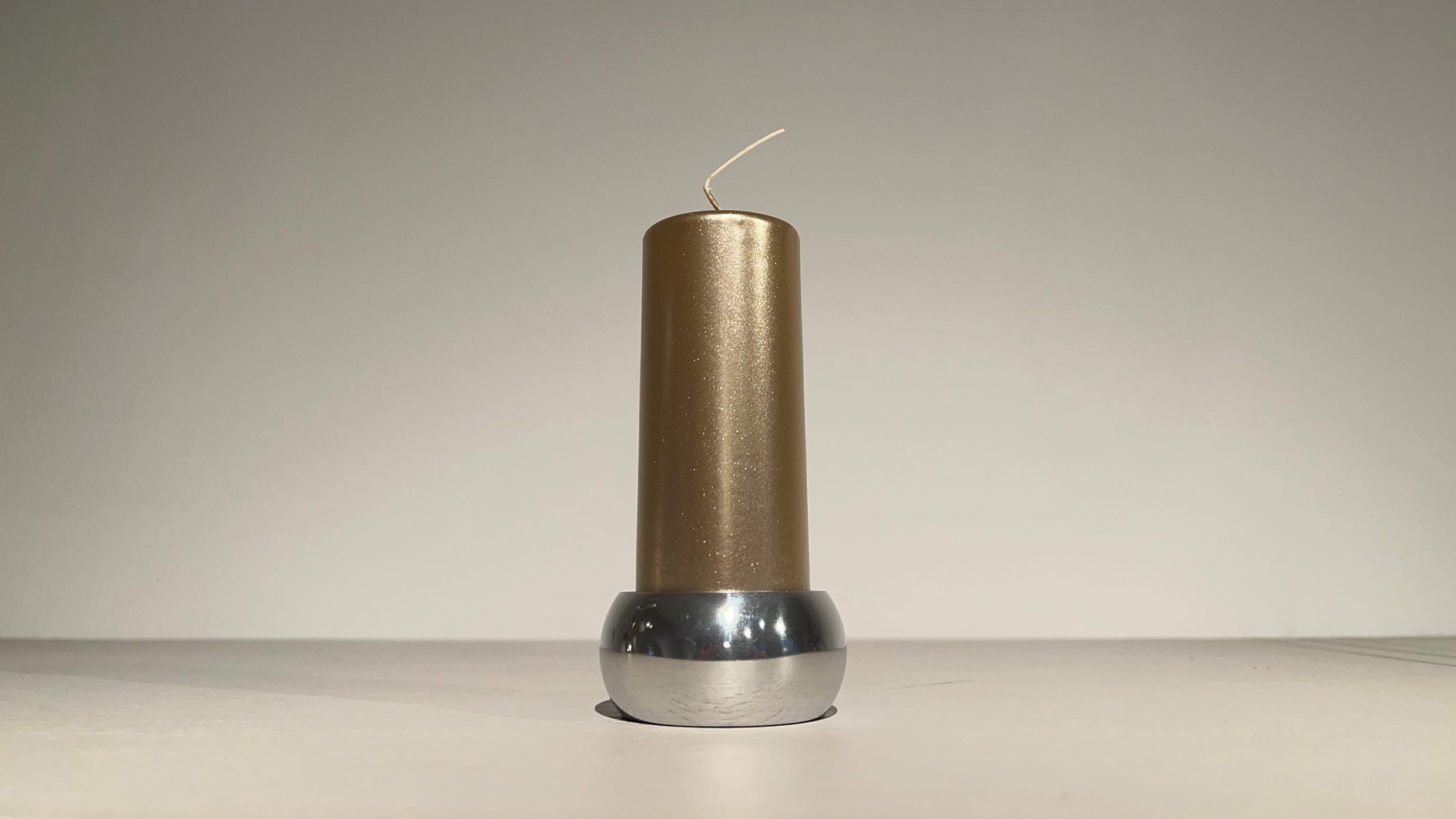 Stilrent blockljus i GuldSilver metallic. Brinner med vacker låga. Droppar inte. Brinntid 19 timmar. Passar utmärkt i ljusstaken – Constella. Finns även i Elfenben klarlack.