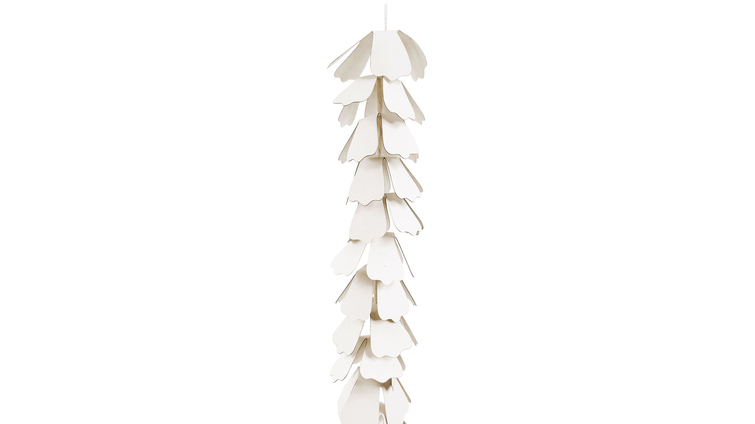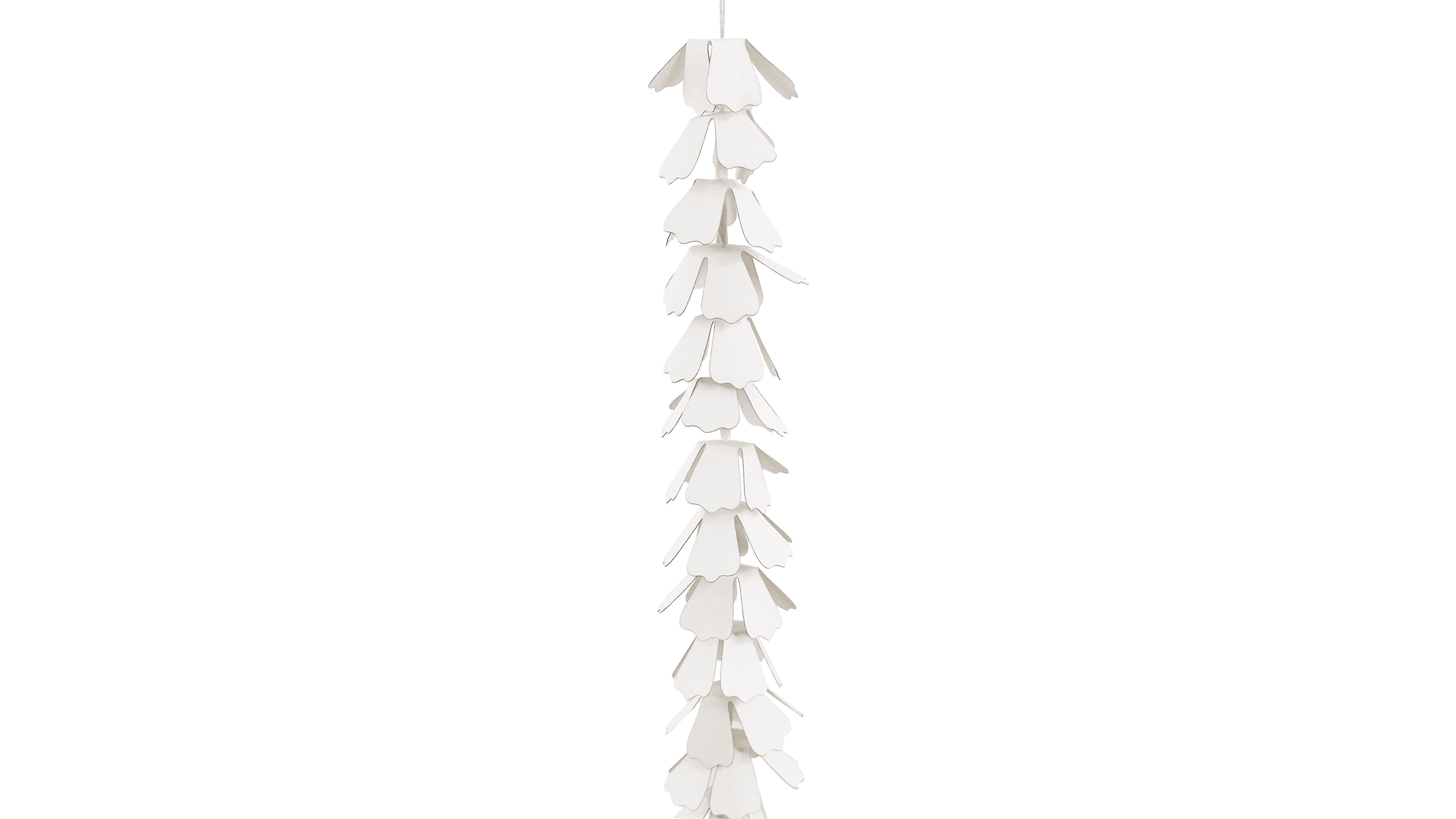 Vacker girlang i papper, föreställande löv. Längd 150 respektive 175 cm. Finns i både vitt och guldfärgat utförande.