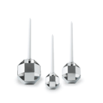 Merkurius är en serie ljusstakar i tre olika storlekar, tillverkade i rostfritt stål. Formgiven av Synnöve Mork.