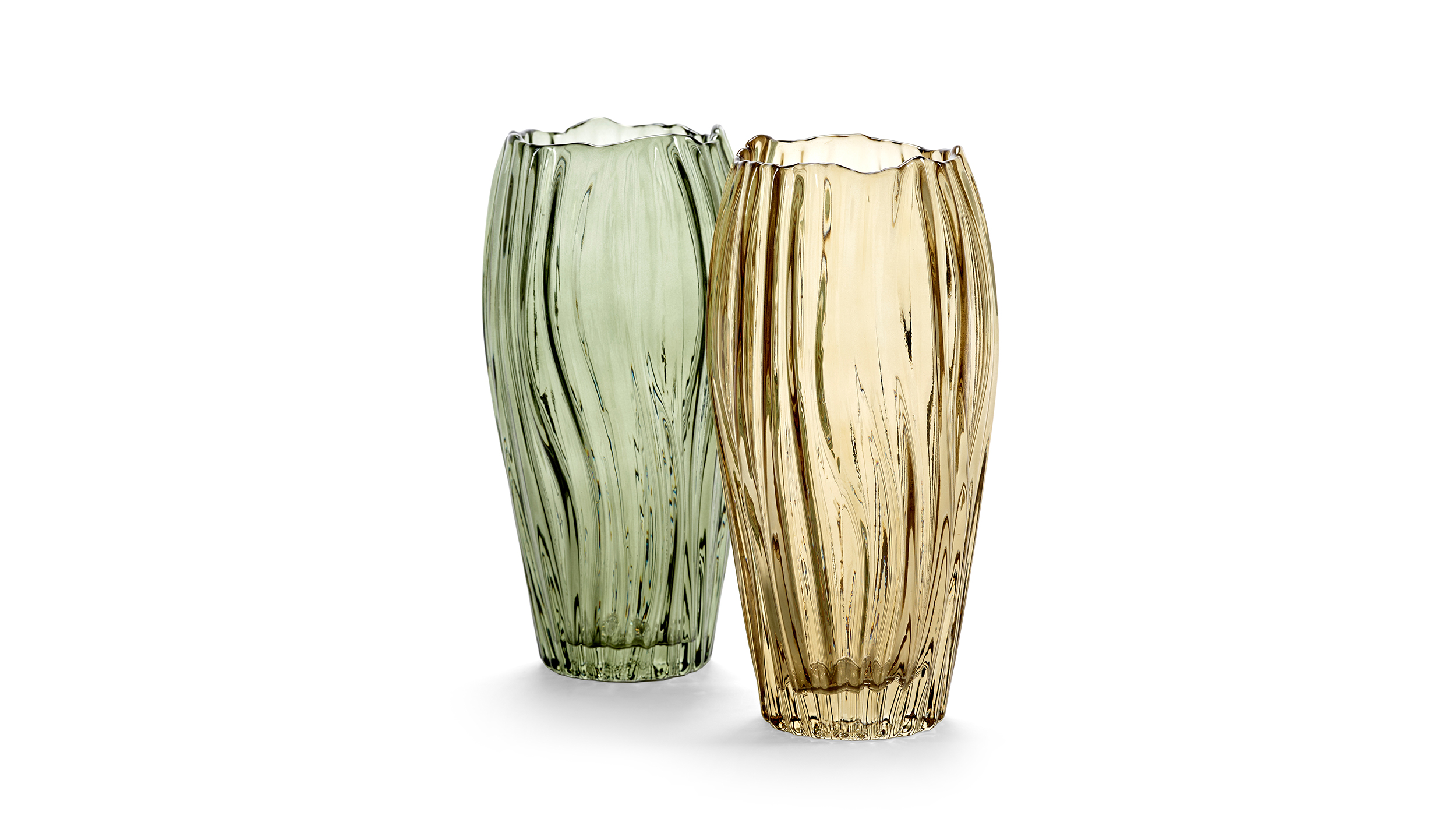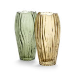 Vas 02 i en vacker organisk ellipsform. Finns i grön alt. gul. I kollektionen kommer även en mindre cylinder vas i samma färger.