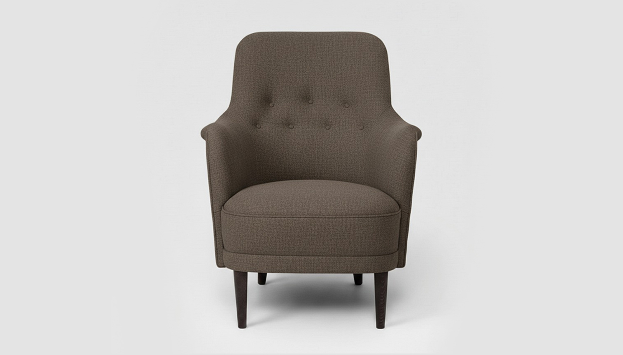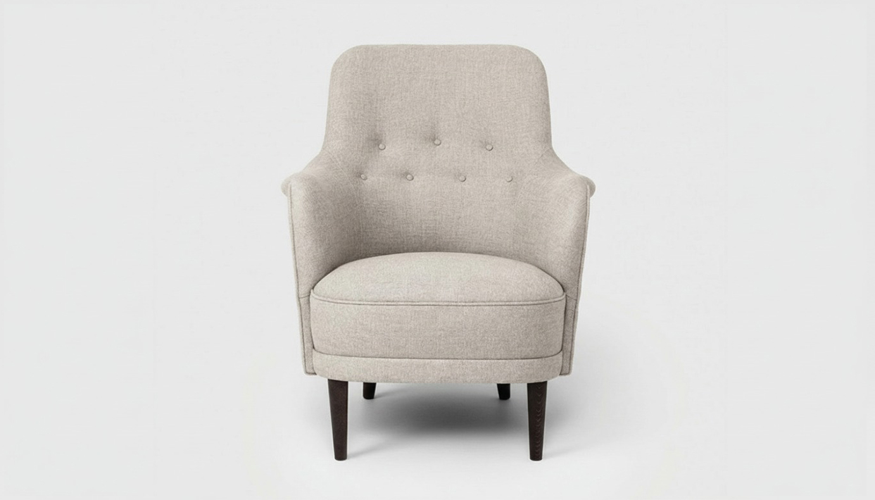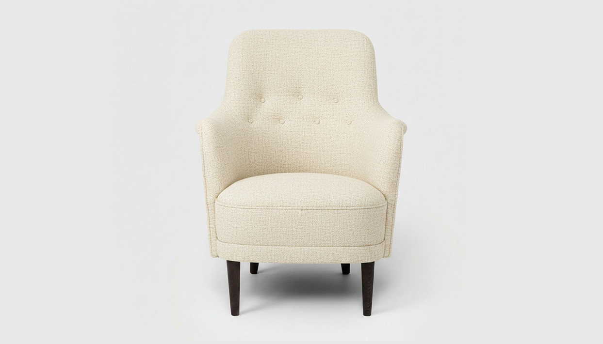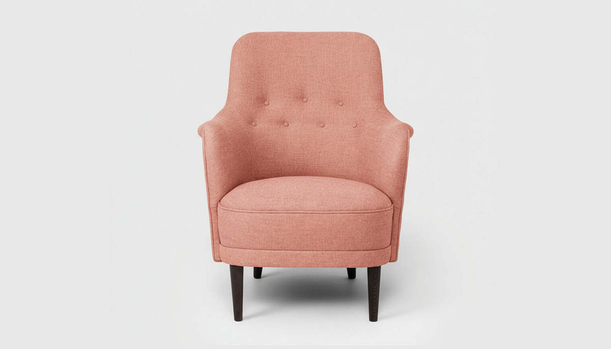 Fåtöljen Samsas med stomme i massiv furu är liten och nätt i yttermåtten men generös och bekväm att sitta i.