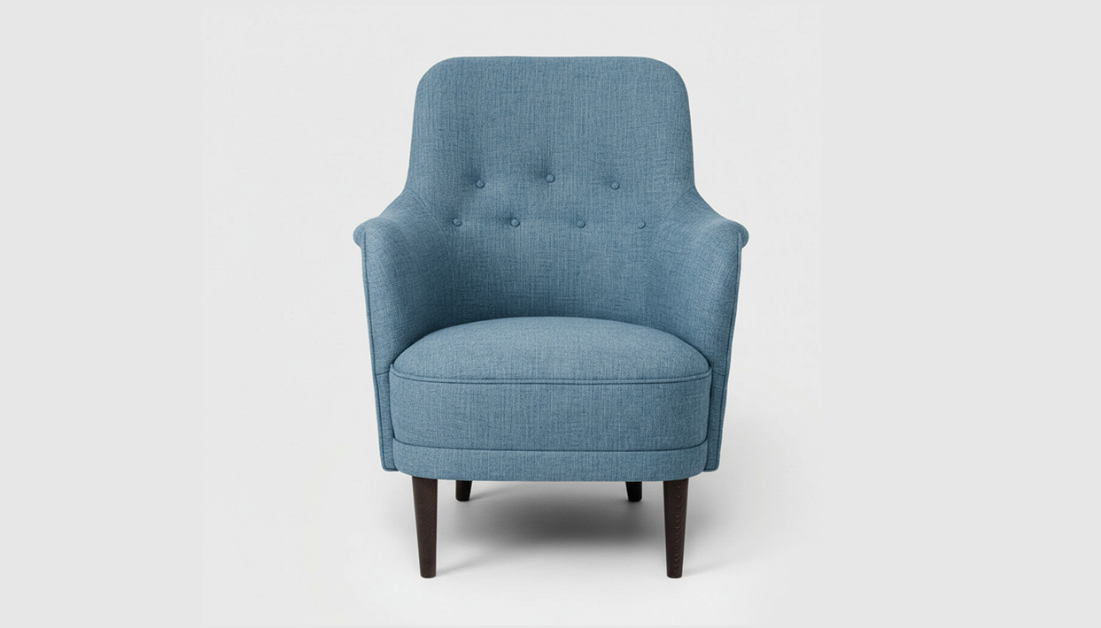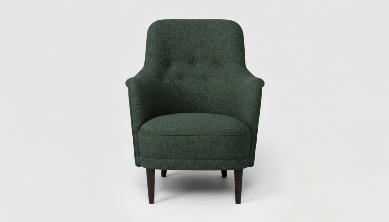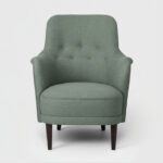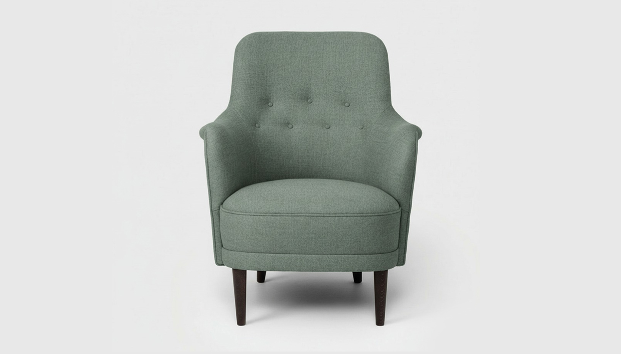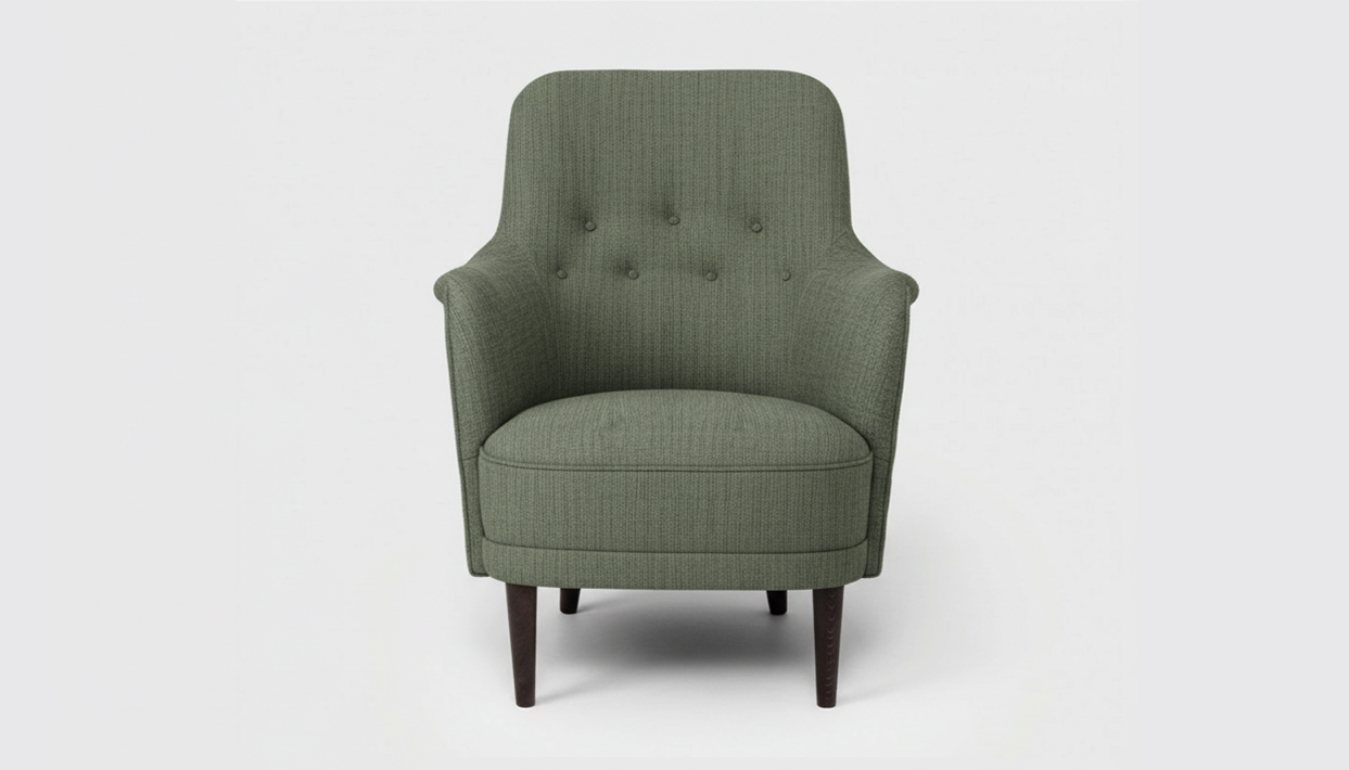 Fåtöljen Samsas med stomme i massiv furu är liten och nätt i yttermåtten men generös och bekväm att sitta i.
