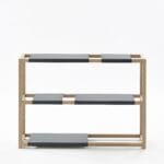 Hylla Botanic design Pinja Rouger & Riikka Kantinkoski för Adea. Den botaniska hyllan sammanför balansen mellan form och funktion. Den varma eken och massiva hyllor i mässing skapar en tidlös design. Botanic Shelf har flera alternativ vilket gör den till en pragmatisk lösning på dagens ökande behov av förvaring och visning i interiörutrymmen. Den lätta och robusta strukturen gör att hyllan fungerar som en traditionell bokhylla men också som en grön rumsavdelare. Med denna anpassningsbara struktur ger Botanic Shelf växterna det stöd, utrymme och ljus de behöver. Den enkla hyllan med modern och tidlös design verkar mysig och lyxig samtidigt. Botanic Shelf finns i tre olika storlekar. Mått: Låg B110 cm, D35 cm, H41,5 cm. Mellan B110 cm, D35 cm, H41,5 cm. Hög B110 cm, D35 cm H114,5 cm. Material: Stomme brunbetsad ek, naturell eller wengebetsad ek. Hyllor i lackerat stål.