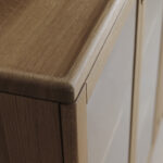 Förvaringsserien Prio utgörs av skåp och vitriner i flera olika utföranden. Prio passar till flera olika inredningsstilar. Genom att alla beståndsdelar är gjorda i trä upplevs Prio exklusiv och naturnära. Det vackra i massivt trä visas upp i detaljer såsom urskålningen av toppen och handtagen samt den avrundade benställningen.